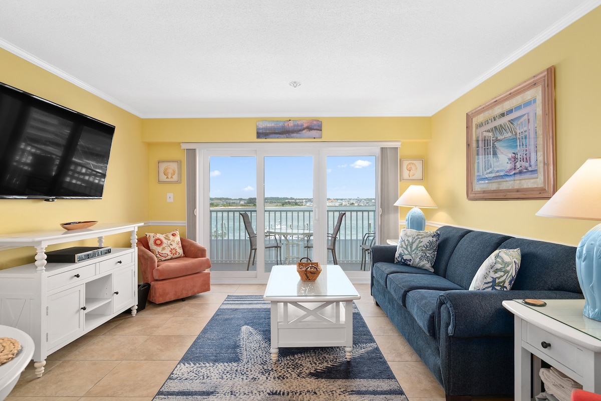 Newly renovated condo!! -Water view. Watch the boat traffic. -Oversized balcony with comfortable seating. -Comfy LoveSac couch. -Walk to boardwalk or beach - 15 minutes. -Walk to Jolly Roger amusement park. -Fish off community dock down below unit. -Close to dining and shopping. -Kitchenette for cooking meals. -Fast Wifi and Streaming TVs. -Fully Stocked Home. Clean linens, towels, toilet paper, paper towels & more!