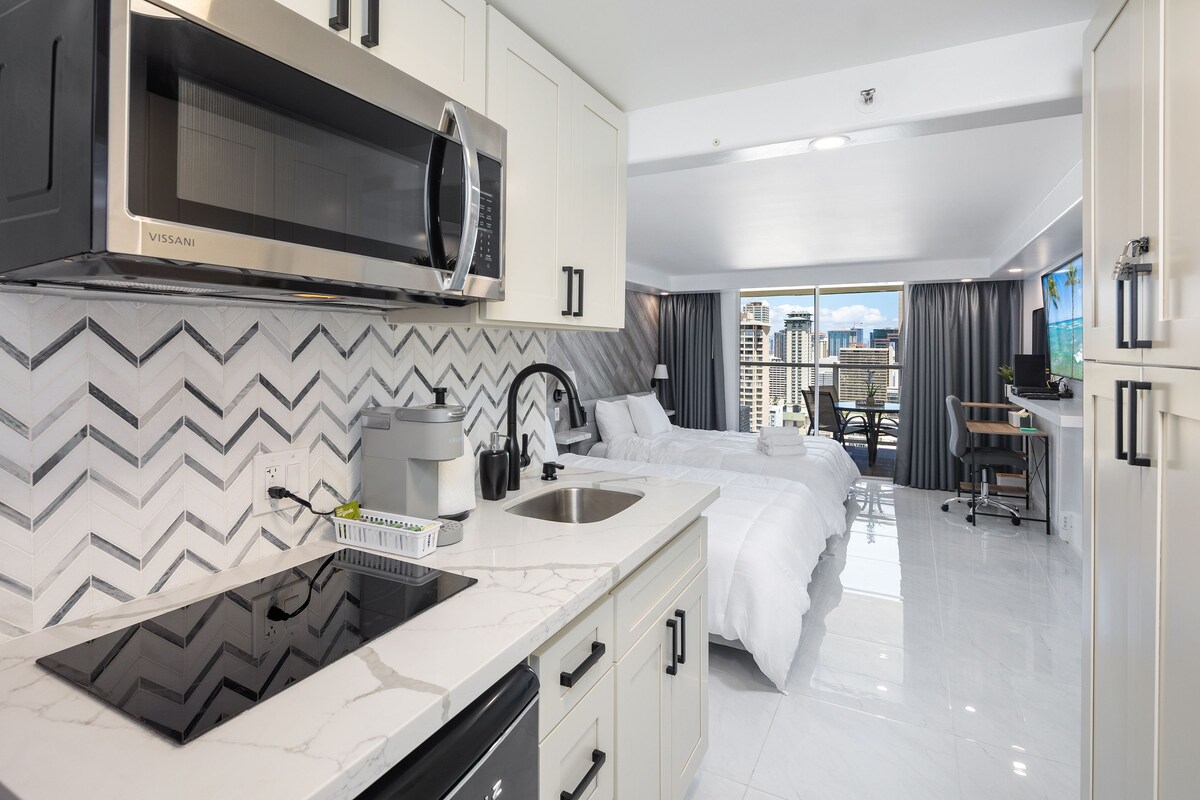 Modern Renovated 2Queen Beds Waikiki Condo Kitchen