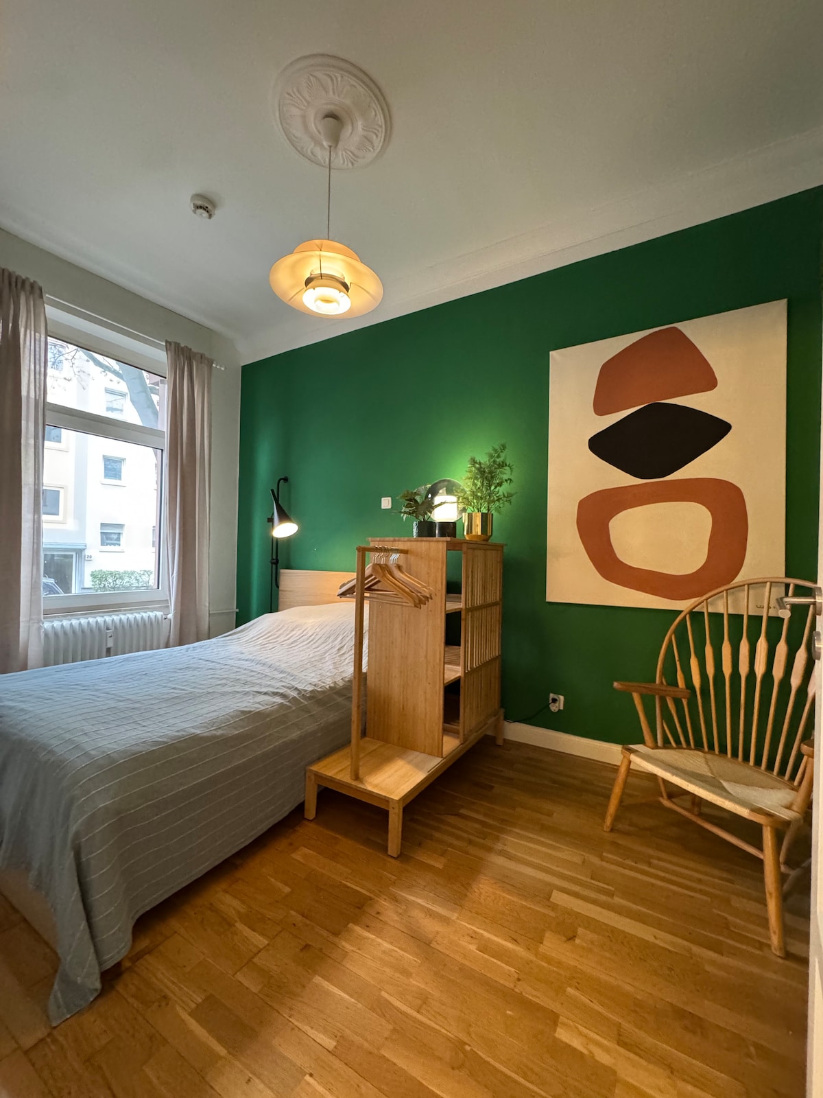 The combined living/cooking room is approximately 40 qm big and 1 room is private and locked. Subway station "Bornheim Mitte" (line U4) only 8-10 min away by foot and from there - 5 min to Konstablerwache/Zeil, - 9 min to Main train station, - 10 min to Fair/Festhalle. The flat is located near Berger Straße with restaurants, bars, supermarkets, drug stores and parks nearby in walking distance. Legal notice:Nach §6 Abs.1 Nr.1 Ferienwohnungsgesetz genehmigt. Aktenzeichen FWA2O182O33