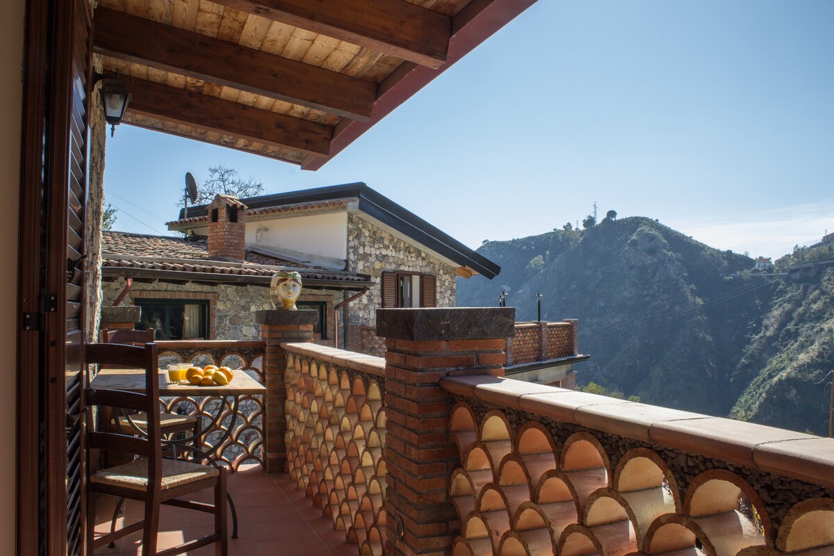 Apartment in the center of Taormina with a large terrace and breathtaking views. A long staircase leads to the apartment The apartment, totally independent, air conditioned and with free Wi-Fi, is located 250mt from Porta Messina, 40mt from the bus terminal, 200mt. from the cable car that leads directly to the sea and a stone's throw from the most important historical works of the city center. The area is well served by everything you need for an excellent stay: minimarket, bars, restaurants...