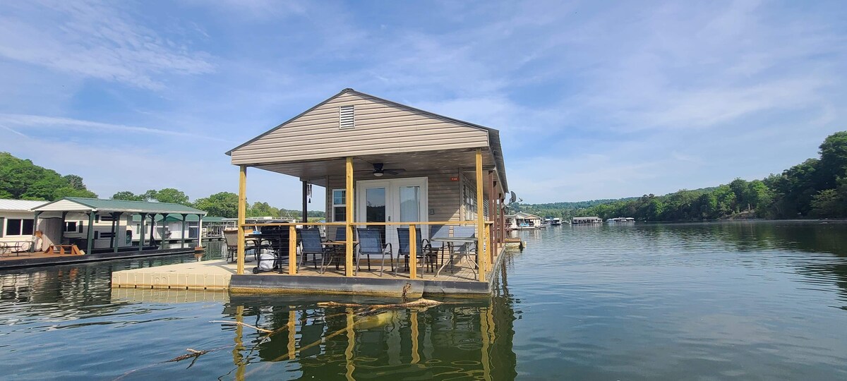 You won’t forget your adorable little “boat house” vaca! THE HOUSE IS FLOATING ON THE WATER & CAN ONLY BE REACHED BY WATER. You must either bring your own boat OR kayak OR rent a pontoon boat. Shore access can be via our SUP/kayaks once at the house. Please note there is no wifi. Lots of room to lay your heads, shower/change, and cook meals. All day water fun outside with kayaks, lily pad, & floats. Located at Powell Valley Marina in LaFolette! QUIET HOURS 10pm-8am