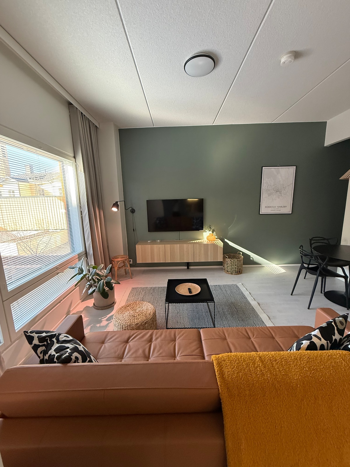 Tervetuloa hurmaavaan Kulmikseen! 🖤🧡 Kulmiksessa neliöitä on 39. Asunto sijaitsee v. 2022 rakennetun kerrostalon katutasossa Kokkolan ydinkeskustassa. Oma sisäänkäynti suoraan sisäpihalta sekä pieni patio. Käytössäsi on myös autopaikka (sisäpihalla, ulko-oven läheisyydessä). Makuutilassa muhkea parisänky ja nukkumaan mahtuu myös levitettävällä sohvalla (140cm). Ilmoitathan, jos kahden hengen varauksissa tarve sohvasängylle. ☺️ Sisäänkirjautuminen klo 16.00 Uloskirjautuminen klo 12.00