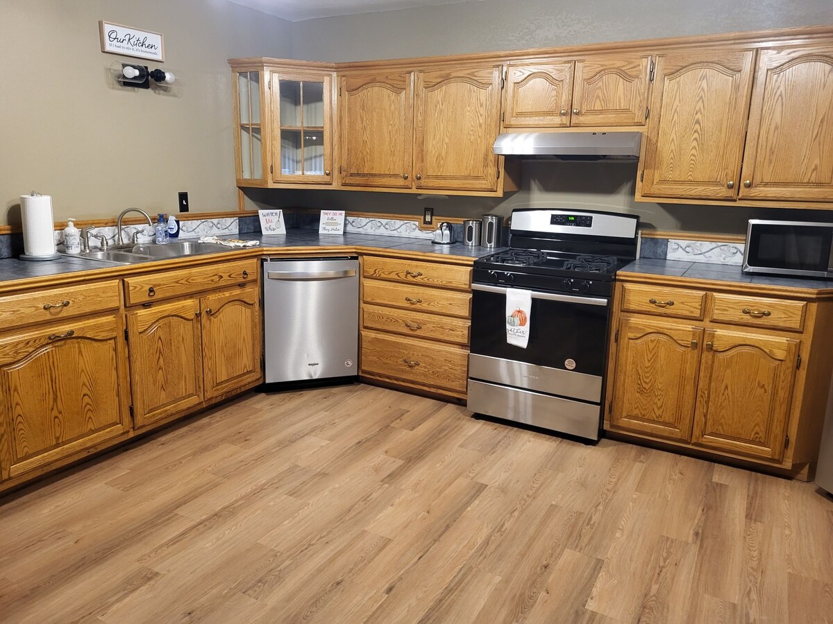 This home away from home is located close to the park, hospital, Meade County Historical Museum, and the Dalton Gang Hideout. The Meade County Fairgrounds is located within a 5 minute drive. This home has 2 separate bedrooms, 1 bath, and a fold out couch in the living room so the property will sleep 6. A spacious kitchen with a coffee/tea/Snack bar is located within the kitchen area. There is a smart TV which is loaded with MANY streaming applications. Exercise Bike and workout DVD'S.