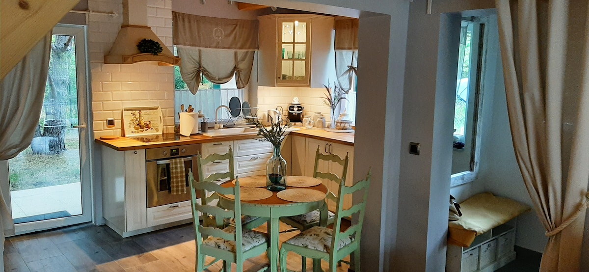 Domki Leśna Polana is an oasis of peace in the immediate vicinity of the forest. A perfect place for people who like active recreation (bicycle, walking, running) the path is located right next to the plot. As well as those who prefer blissful relaxation on a sun lounger, A hot tub with hydromassage, wood-fired on the terrace A newly built complex of 3 high-standard year-round houses.