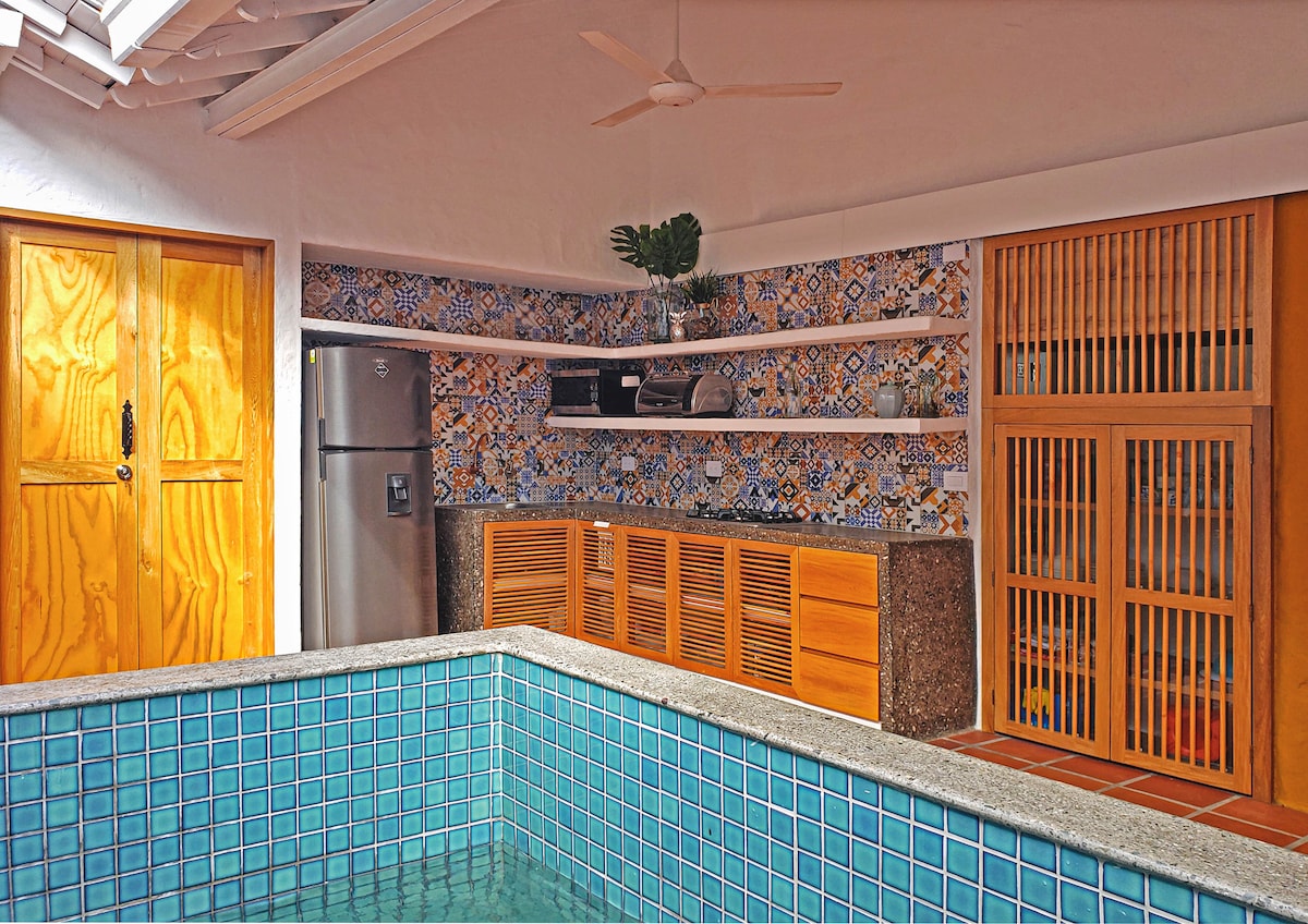 This cozy house is a colonial construction equipped with design, color, details and all the comfort for your stay, ideal for couples, families and small groups of friends. It has a small pool so you can cool off on hot afternoons and a large living room. Located in the historic center, you will have places of touristic interest like bars and restaurants a few meters away, without losing the intimacy and calm vibe that the space offers. Welcome to this little paradise!