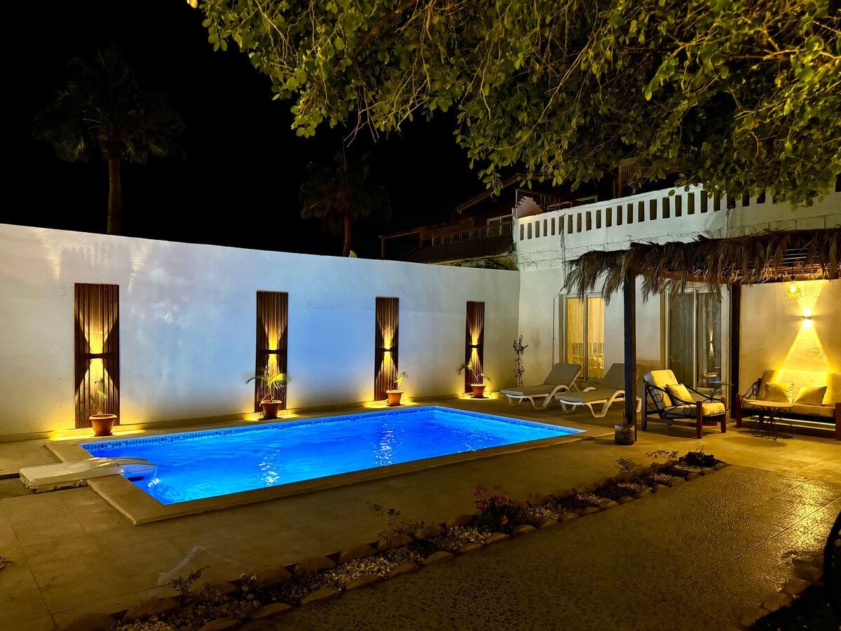 Amazing and Unique in Hurghada, family friendly holiday home or a romantic get away for honeymooners with a large private swimming pool only for you,nothing is shared Spacious livingroom, with open kitchen and toy corner Up, Master bedroom ensuite with shower and a bedroom with kingbed, bunkbed and a Playstation5 Bathroom to fully relax with a big Jacuzzi The villa is fully eqiuped with all what you need We will be honored to welcome you and make your stay amazing and arrange trips for you