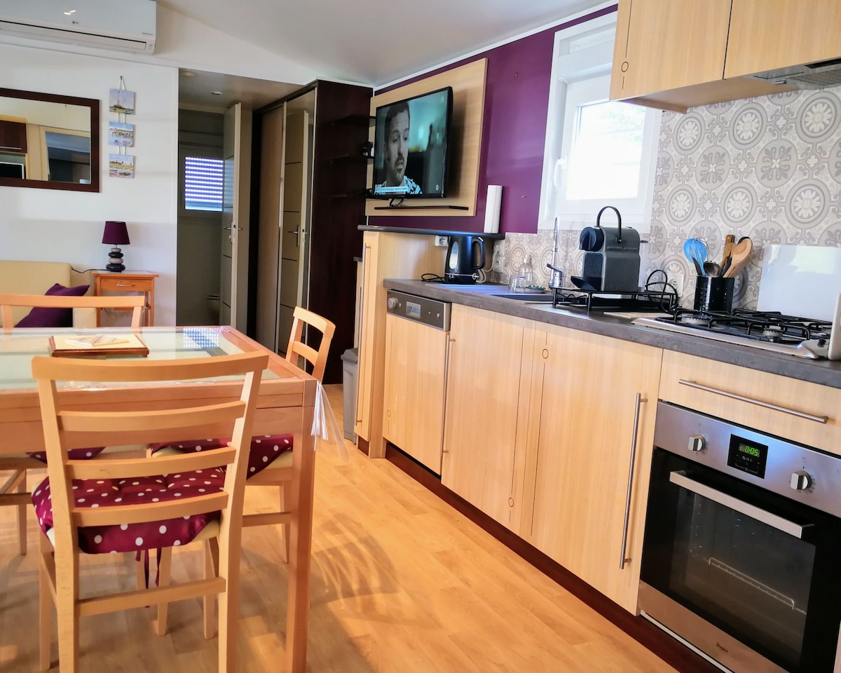 This wooden chalet, designed in an environmentally friendly way, is the perfect place for a relaxing family stay. Located on the island of Oléron, one of the pearls of the Atlantic coast, it welcomes you in a natural, intimate and wooded setting. With its south-facing orientation, this accommodation enjoys a privileged location: only 600 meters from the beach, close to shops within walking distance and close to the departures of many bike tours.