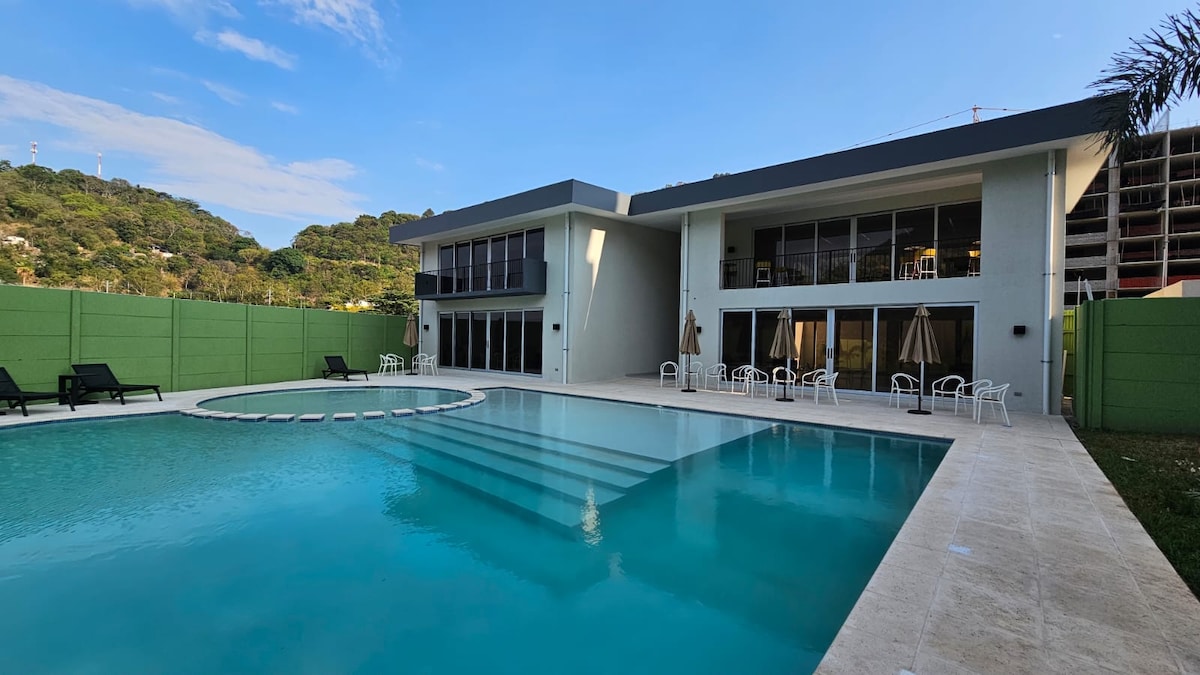 Comfortable PRIVATE mini apartment with 1 bed, located in a central, private, quiet and safe residential area of San Salvador. Private bathroom, A/C in the room, Wi-Fi, Smart TV with Netflix, closet, refrigerator, 1 outdoor parking space, etc. The property is located near Cuscatlán Stadium and 10 minutes from shopping centers such as La Gran Vía, Multiplaza, El Salvador del Mundo, and 5 minutes from Starbucks, restaurants, pharmacies, etc.