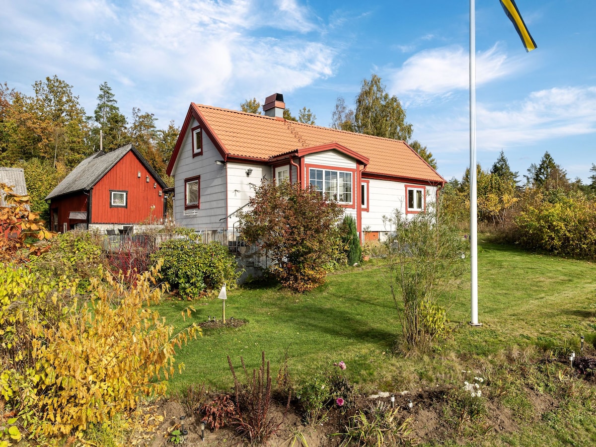 This Swedish country side house is a retreat to be in. It is the perfect place to relax close to nature. It has a wooden stove, nice open kitchen, living room and bedroom with glas doors that open to a big terras with private garden. The bedroom has a big double bed and a possibility for a child bed. There is a very comfortable bathroom with bath. Beautiful forests, lakes, playground, bakery (open on fridays), and regenerative veggie farm are just around the corner. PN: Limited public transport