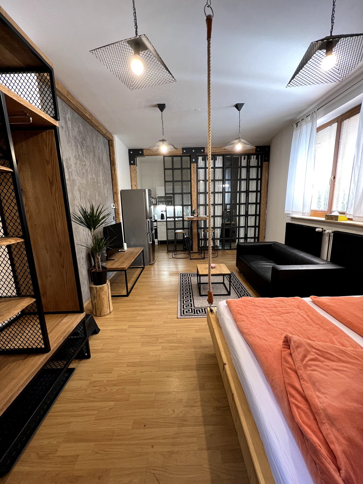 This studio apartment of 86 m² is located on the ground floor and features windows overlooking the garden. The apartment includes a private terrace, perfect for relaxation. It has its own entrance and is conveniently situated next to our quiet parking area, ensuring maximum comfort. Important notice: We’re sorry, but the hot tub in this apartment is temporarily out of service. Thank you for your understanding.