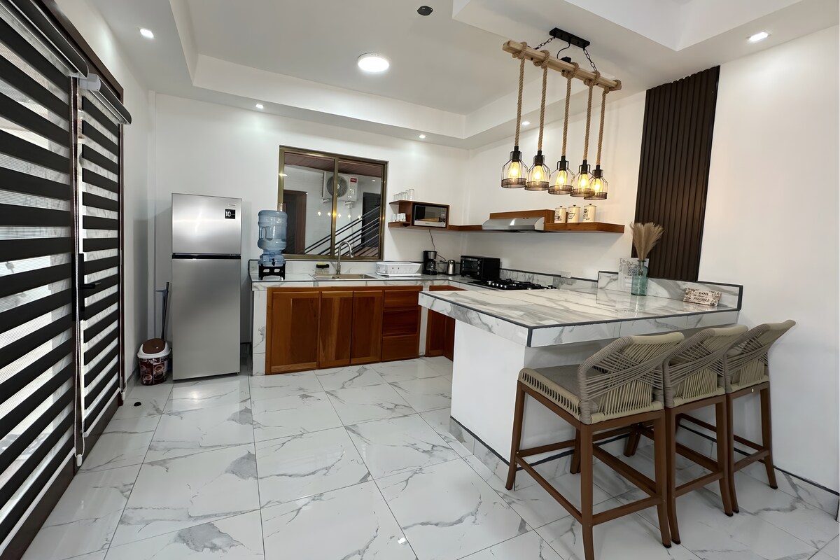 This unique family-oriented suite offers a perfect blend of comfort, space, and style. Designed with families and friends in mind, it features an open airy layout that allows everyone to relax and connect while still enjoying their own space. All furniture pieces are made from local Belizean Exotic woods. The designs are made by local artists. You are one tap away from an unBelizeable time at Orange Walk Town, Belize C.A.