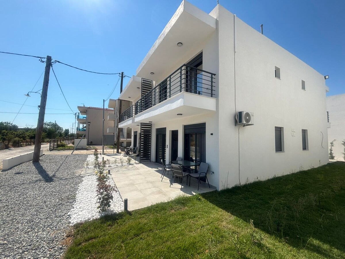 A comfortable, bright house ideal for families, couples, or groups of friends, perfect for relaxing after a day at the beach. It is located just a short walk—3 minutes on foot—from the sea, in a quiet area surrounded by trees and nature. Asprovalta, ideal for evening strolls, is only 10 minutes away, while the beaches of Kavala are just 15 minutes away. The property features a private yard with parking space and a garden with trees and plants. Guests also enjoy constant access to fast internet