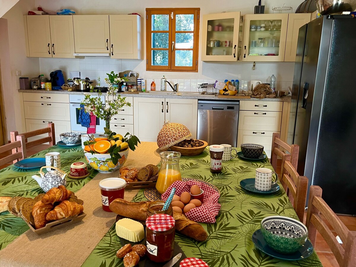 A peaceful haven in the middle of the meadows, at the foot of the Alpilles, 7 km from Eygalières. 5 minutes from all major roads. Come disconnect and enjoy the sweetness of a summer evening under a plane tree mulberry tree, or listen to the birdsong. We will be happy to host you, but independently, and will share our local tips (market gardener, olive grower, winemaker, tree grower,...). Welcome to the Alpilles, accessible for nice hikes.