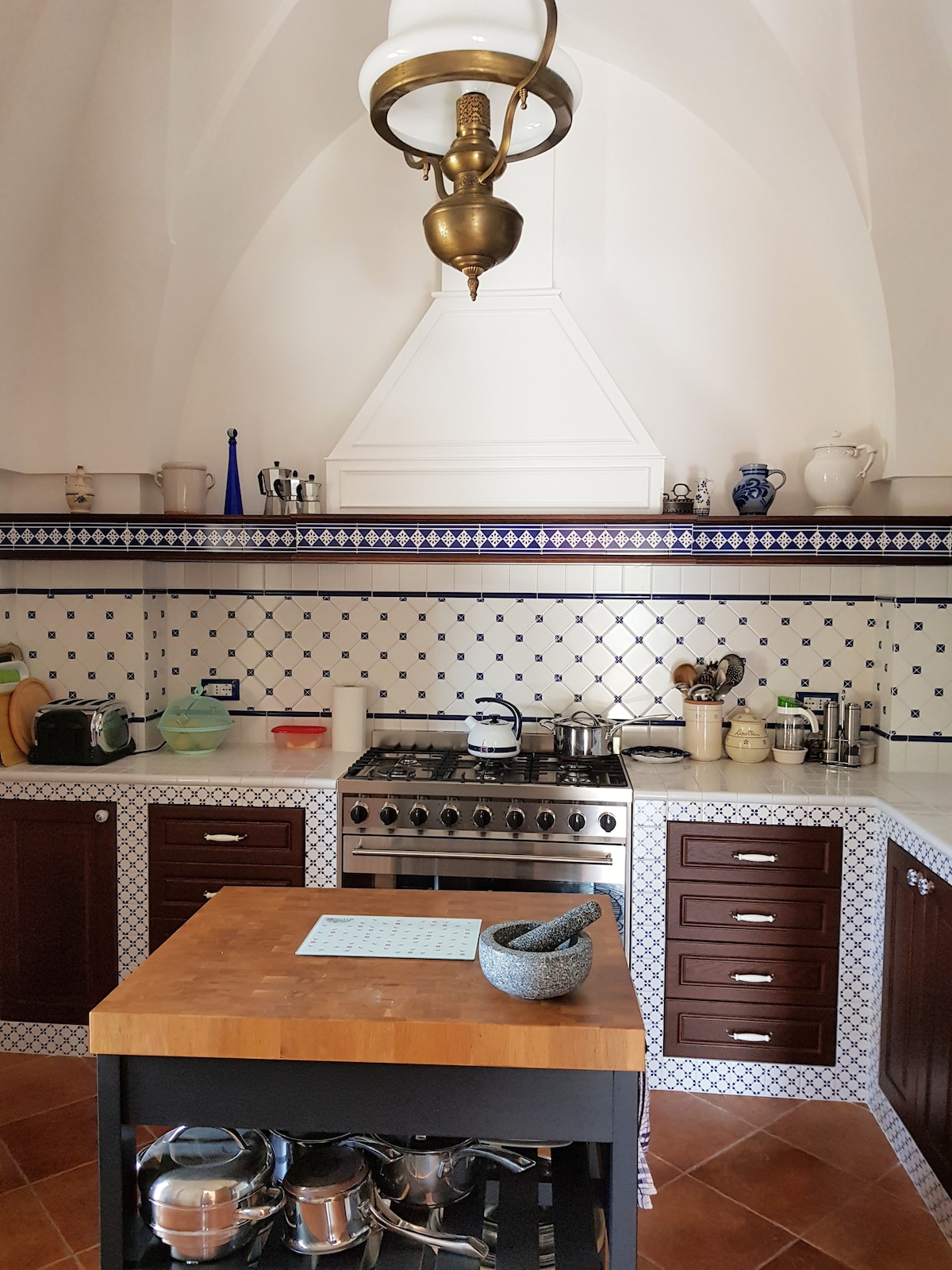 Palazzo Corrado is the front half of a grand old palazzo, located a few steps from Oria's main piazza. This huge apartment is very light and airy, with 4 balconies, soaring 6 meter vaulted ceilings, roof terraces, sun loungers and eclectic art from around the world. Modern designer fittings and furniture blend seamlessly with antique and vintage finds, where every convenience and comfort has been thoughtfully chosen.
