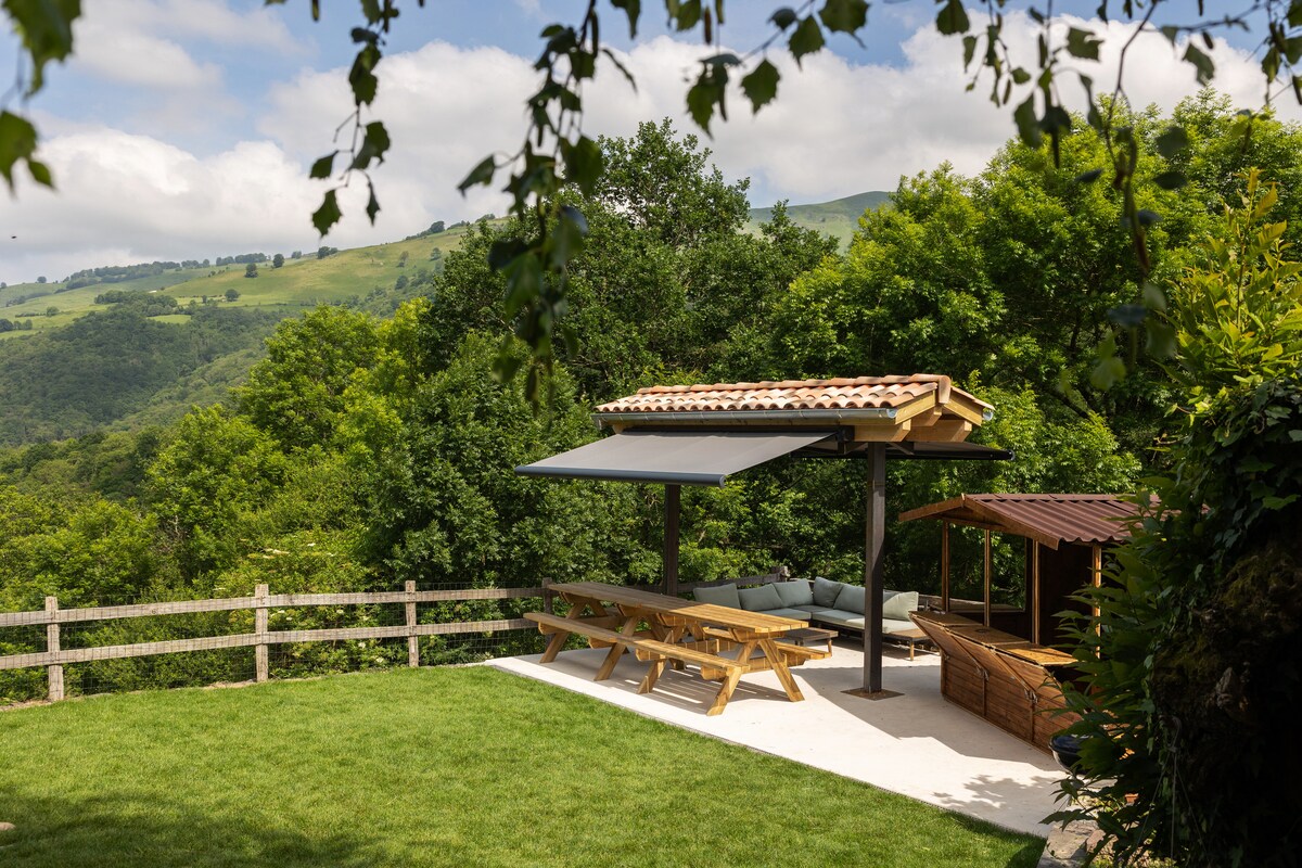 Restored townhouse. We have equipped it with the maximum comfort and necessary amenities. It has a large room with a Jacuzzi, a kitchen-living room with a fireplace, a bathroom, and stunning views of the Etxauri valley. A large balcony and access to a shared patio and garden. Ideal for disconnecting and enjoying nature: climbing, canoeing, hiking, cycling, etc. Located in Bidaurreta, a village of 180 inhabitants, just 20 kilometers from Pamplona.