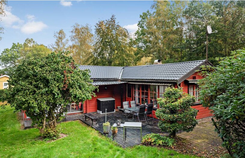 Our beautiful holiday home "Svenska Huset" is located high on a 5000 sqm hilly natural plot, overlooking a small lake, with a smaller road in between. Winter period - View of the lake. Summer period - The lake is only seen a little when leaves and trees have sprouted. -House 60 sqm. Outdoor room 20 sqm - Bedroom with double bed, width 140 cm - Bedroom with bunk bed for 3 people - Daybed at one end of the living room -Bathroom with combi washing machine/dryer -Board games/PlayStation3 -Air/air heat pump -Open fireplace