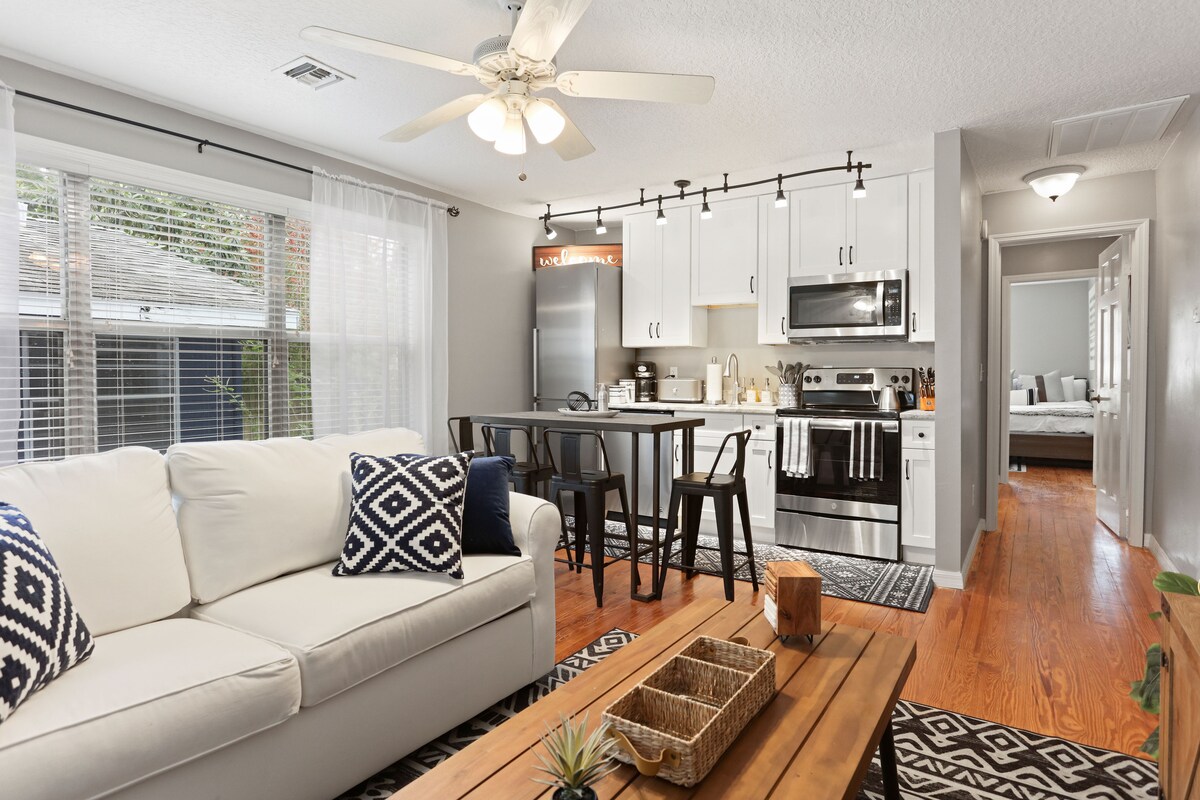 The perfect Oasis located in the beautiful Historic Thornton Park, one of the safest and quietest neighborhoods in Downtown Orlando, this brand new studio apt is perfect for couples, business travelers, and families of 3. Enjoy custom cozy decor, a super-comfy queen bed, full kitchen amenities, and a private view of the pool & downtown skyline. Easily walk to great parks, restaurants, bars, shopping, and Lake Eola. 20 min to Universal. 25 min to Disney. *VIDEO TOUR* available on YouTube.