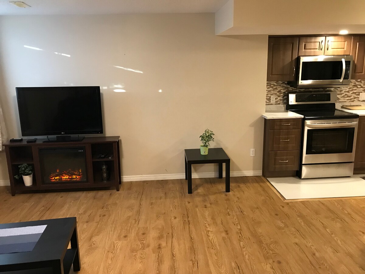 Take it easy at this unique and Cozy 1-bedroom Private suite basement! Enjoy a restful stay with a comfortable King size bed. This charming retreat features a private entrance, a modern bathroom, and all the essentials for a perfect getaway. Ideal for couples, solo travelers, or small groups looking for a relaxing and convenient stay/getaway.