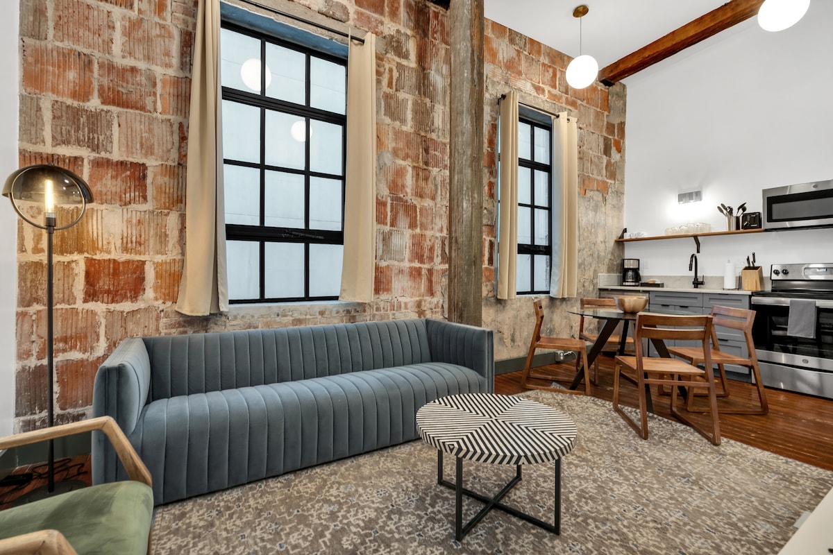 Experience New Orleans charm and modern luxury in this vibrant, 4-bed, 4-bath suite. Situated on the famous St. Charles Ave streetcar line, a few steps to Tito's Restaurant & Bar, walkable to the French Quarter, and Downtown. Beautifully renovated historic building with exposed brick walls, high-end finishes, and bold colorful design. This property brings the spirit of New Orleans to life. Spacious living room, fully equipped kitchen, everything you need for your stay. Outdoor pool with turf.