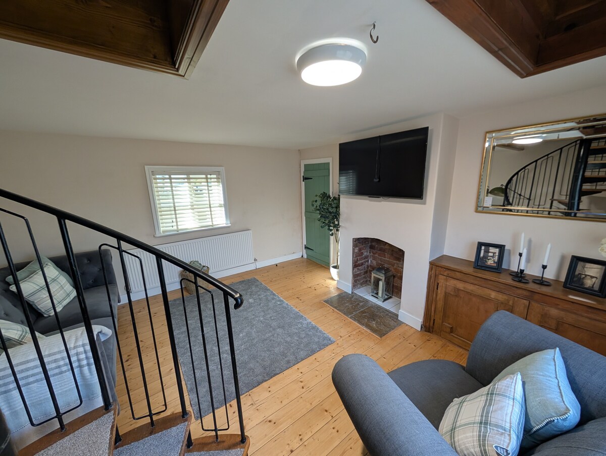Take it easy at this unique and cosy cottage with a real open fire and original beams. The cottage was constructed in approximately 1750 during the reign of George II. The cottage is constructed from wood and stone and there is not a straight wall, ceiling or door casing in the house! You learn very fast (after banging your head once or twice) to duck under the low door frames and beams. The cottage is small, quirky and very cosy but with a suprisingly large master bedroom and bathroom.