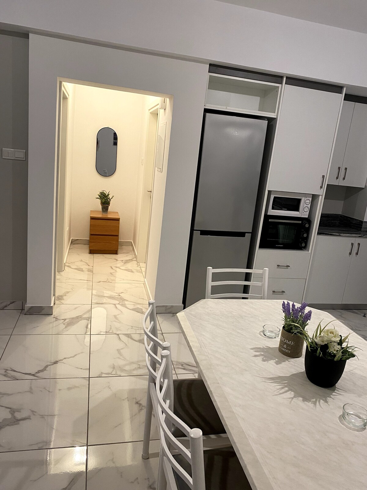 New and tastefully furnished, perfect for those looking for a relaxing and high standard accommodation. The stylish apartment is very close from the main beach (foinikoudes) and can comfortably accommodate 4 up to 5 guests and even 6 with an additional single bed in the living room! Is found on the first floor (with lift)heading with only 8 mins easy walk to the beautiful beach and 6 mins walk to the main bus stop. The strategic position will allow you to very easily walk to all major points.