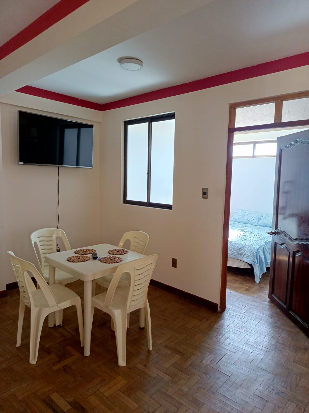 Un amplio departamento ubicado en el centro de Oruro, a una cuadra de la Av. 6 de agosto y mercado Campero. Tienes agua caliente las 24 horas y todo lo necesario para que tu estadia sea acojedora.
