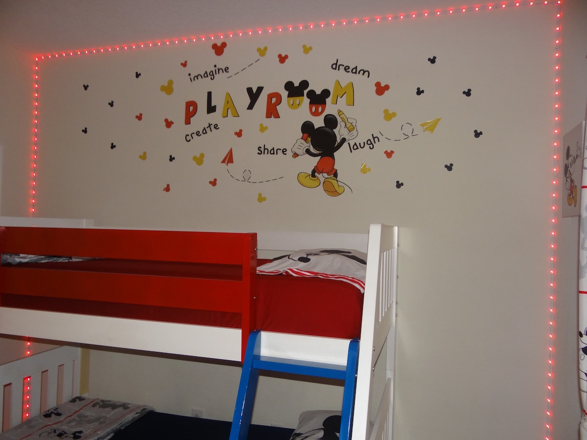❤ Illusion room with character outfits ❤ Private pool with water view ❤ 15 min to Disney ❤ 25 min to Universal, SeaWorld, Convention Center, 2 min to Walmart ❤ Game room with board games & kids toys ❤ 100" movie theater screen ❤ Free Netflix ❤ Fully equipped kitchen ❤ Sleeps 12 ppl ❤ 2 king beds, 2 cribs, 1 Queen memory foam sofa bed, 6 twins ❤ Newly renovated home ❤ Fully stocked home ❤ Alice in Wonderland®-themed home ‼️ No parties, No smoking, 4 dogs max $75/pet