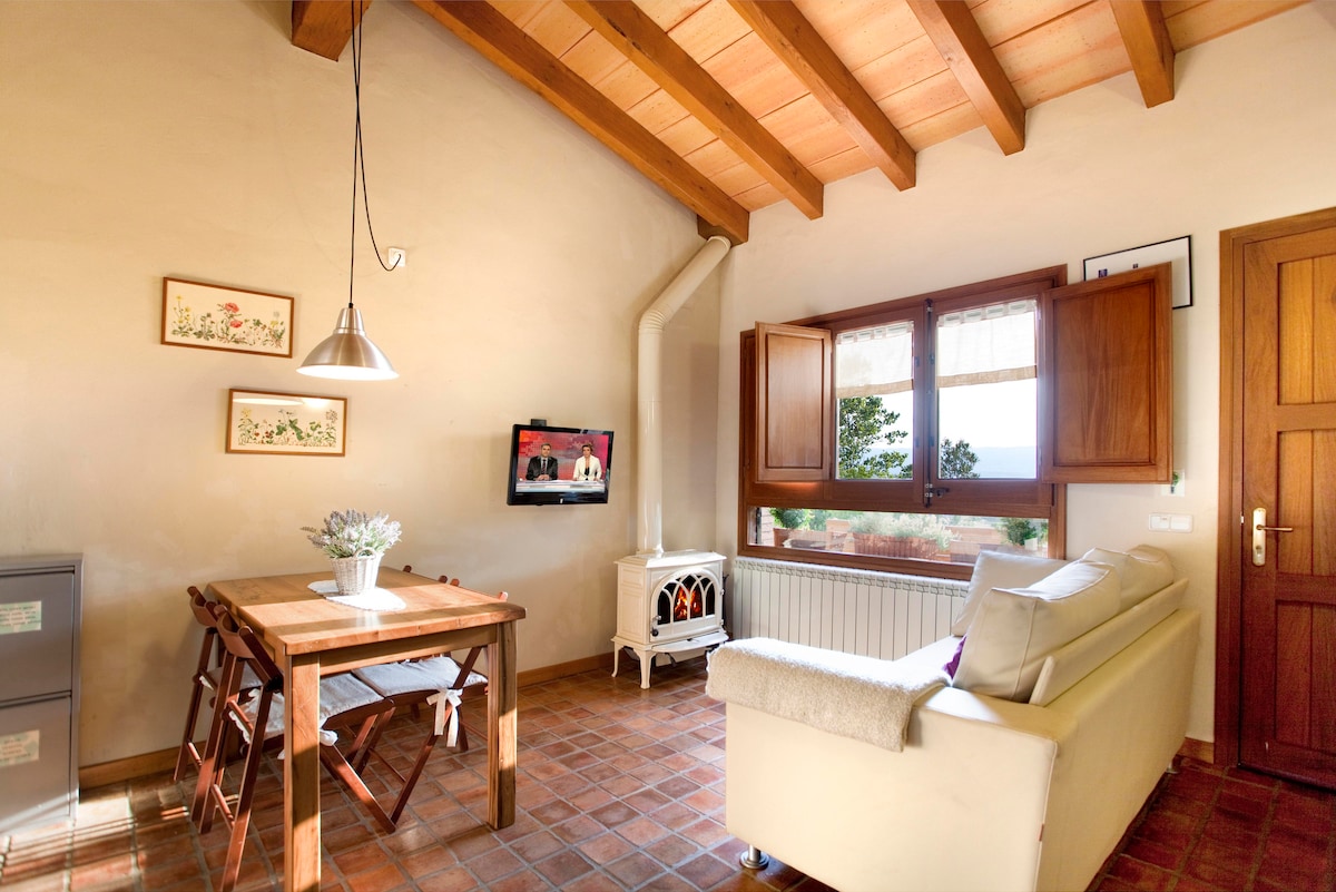 We are in the heart of Les Guilleries, at 950 m altitude in a "Protected Natural Space". It's a great place to rest and do activities. It is a restored farmhouse, with cozy, updated spaces and a rustic air. The environment allows you to isolate yourself from the world, (9 km of forest track in good condition). The nearest urban center is 18 km away, but it is also close to interesting places to visit (historical, cultural, gastronomic...). The meadow is an extension of the apartment.