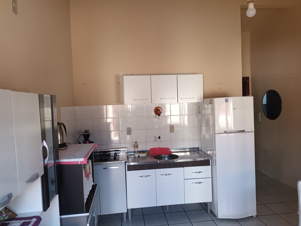 ✅️Entire space - apartment in the center/beachfront, close to the EU AMO TRAMANDAÍ sign and the BISTEK Supermarket. ✅️It consists of 1 double bedroom, living room, kitchen, single corner/1 raised bed, 1-seat sofa bed, bathroom (small), ground floor. It has a coffee maker, blender, microwave, toaster, washing machine, dishes, cutlery, pots. ✅️Condominium with: ballroom, barbecue grills, playground, court, bocce ball court, showers, parking for up to 2 vehicles, 24-hour concierge.
