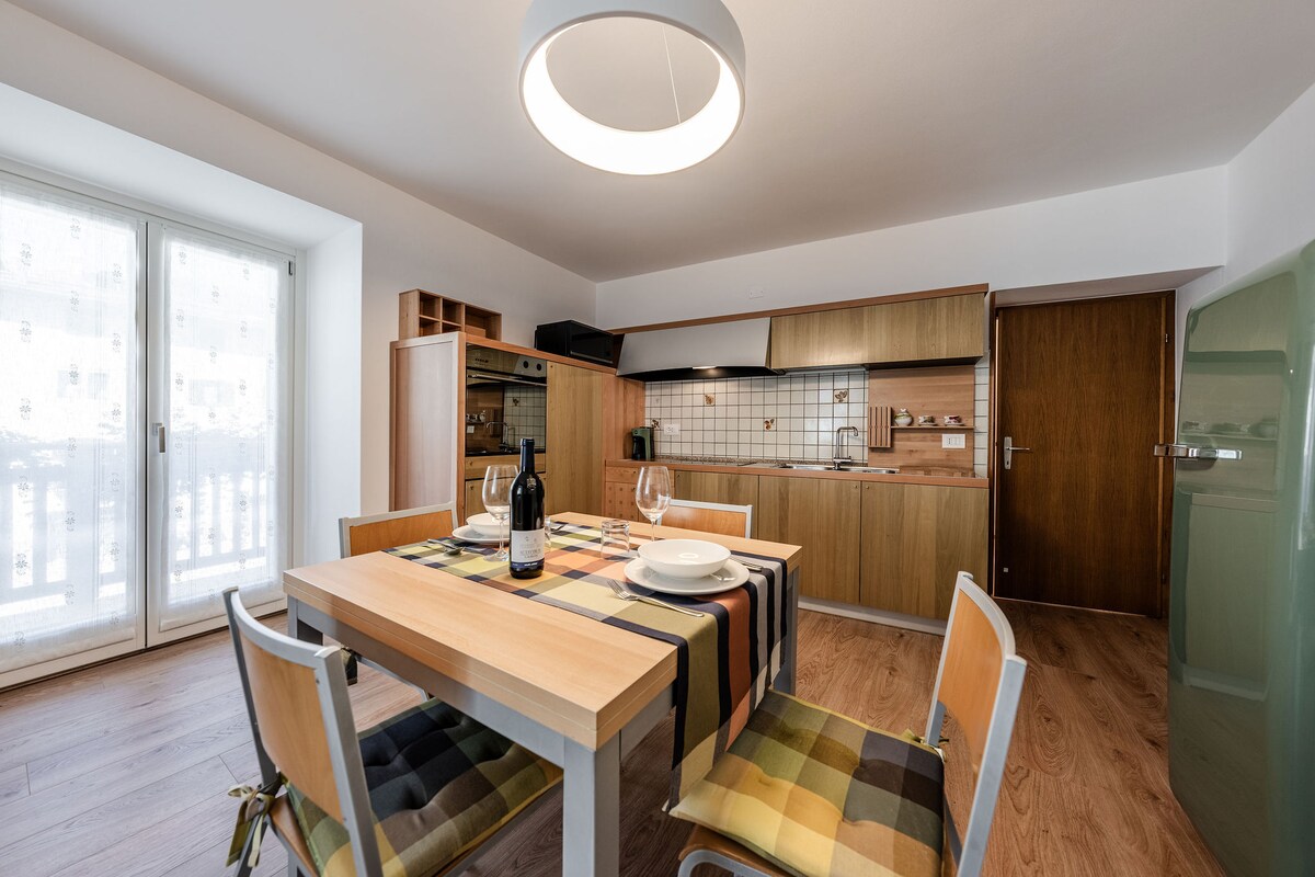 Luxury Chalet Maria located in the heart of the stunning Val di Peio, in the charming village of Celentino. This enchanting location offers breathtaking views of the Ortles Cevedale mountain range. This elegant residence provides a comfortable and modern living environment with a touch of Alpine style. The apartment features two spacious bedrooms and a finely finished bathroom equipped. The kitchen and living room blend into a bright open space, creating a cozy atmosphere with a modern design.