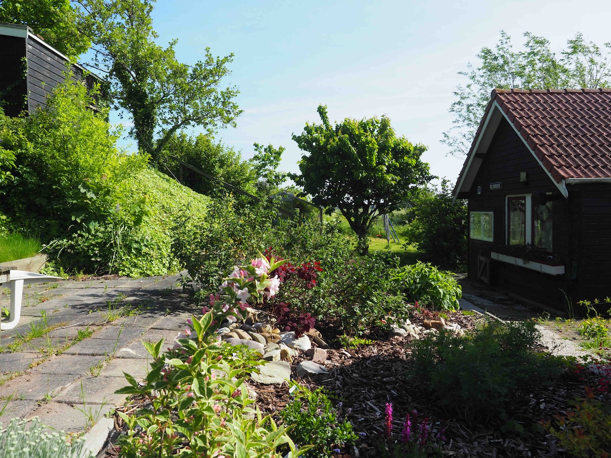 Het huisje Zilt is lekker licht en fris door de twee ramen beneden en openslaande deuren. Het huisje wordt verlicht door dimbare spotjes. De verschillende en natuurlijke materialen geven het huisje een gezellige strandsfeer en een echt vakantiegevoel. Boven is de slaapkamer heel gezellig door het steigerhouten plafond. Achter het bed is een klein raam met uitzicht op de tuin en landerijen. Dit geeft meteen bij het wakker worden al een vakantiegevoel!