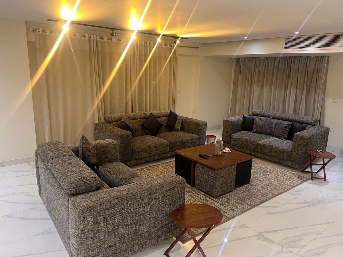 Newly refurbished apartment in heart of Cairo. Near to all major attractions in Cairo city. 3 bedrooms and 3 bathrooms. 2 Bedrooms with en suite bathrooms. Spacious living and dining area. Kitchen with cutlery and cooking facilities. Washing machine available. Nice building with reception entrance. Security available on premises.