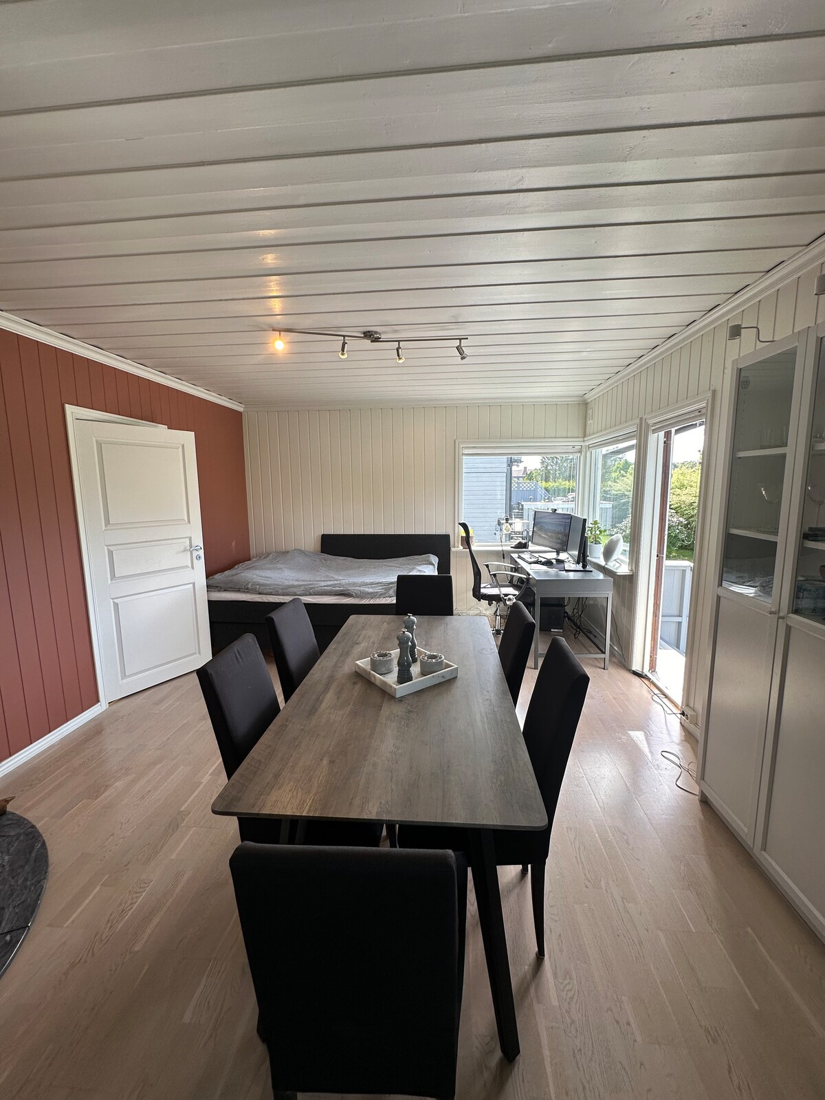 The apartment is about 60 sqm, refurbished (2019) and located in a quiet area of Jeløy with its own entrance, balcony, 1 bedroom, living room with open kitchen solution and bathroom. It is located on the second floor with a great view of Moss. It is equipped with kitchen and the bathroom includes a shower cabinet, toilet, sink and washing machine. The bedroom has a double bed, but there is the possibility to sleep on the sofa bed in the living room if one wants to sleep separately. Free parking in the street. Perfect as a holiday apartment or accommodation for 2 persons.