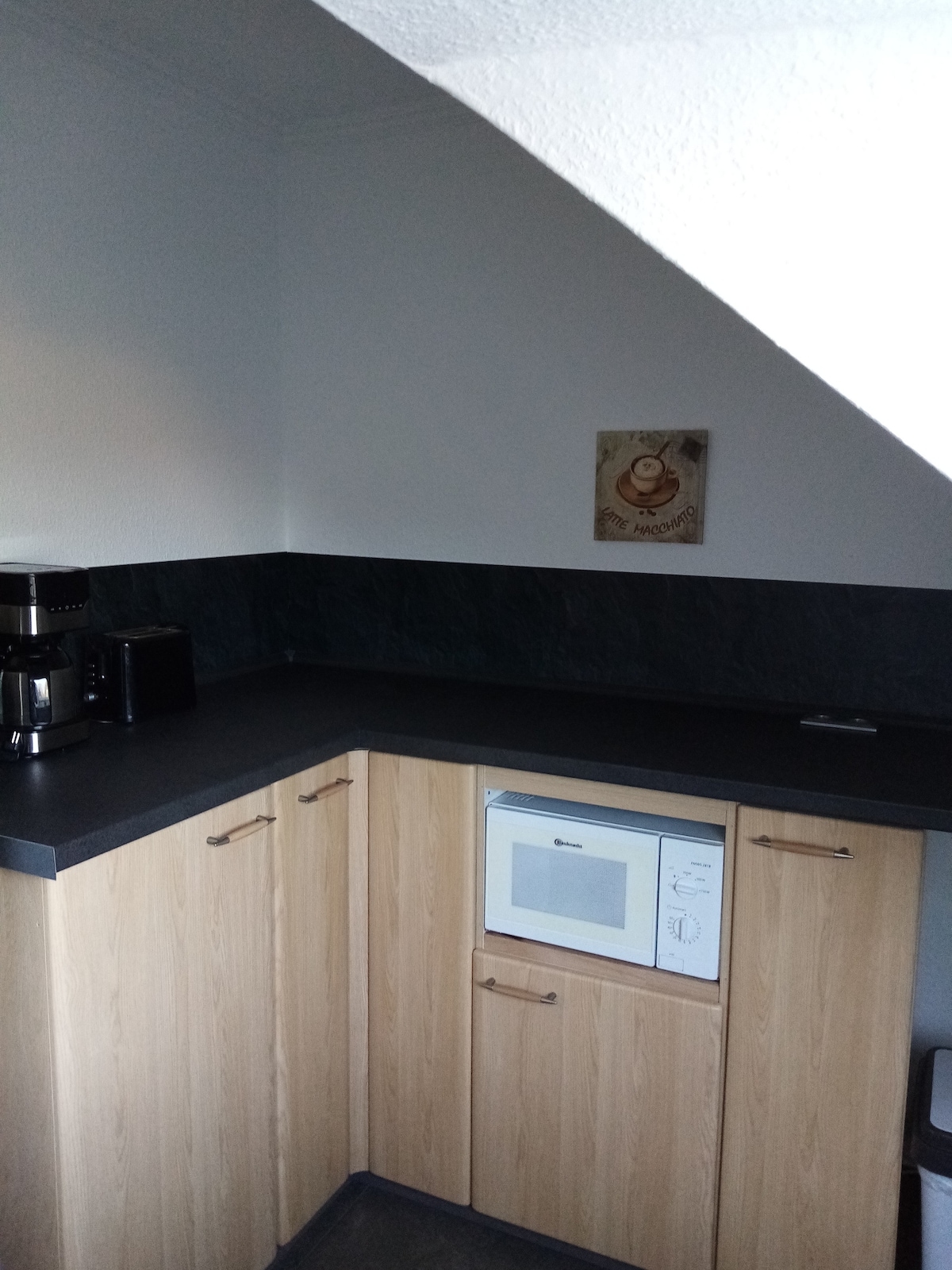 Hello! We offer our apartment as private accommodation for rent. It has its own entrance, kitchen, shower room and living / bedroom. It is connected to our house via an internal staircase. Upstairs, however, there is a door which is locked. The place has a separate entrance. We allow you a flexible key handover. Towels, bed linen, Wi-Fi, kettle, dishwasher, fireplace and terrace are available. Free parking on the premises.