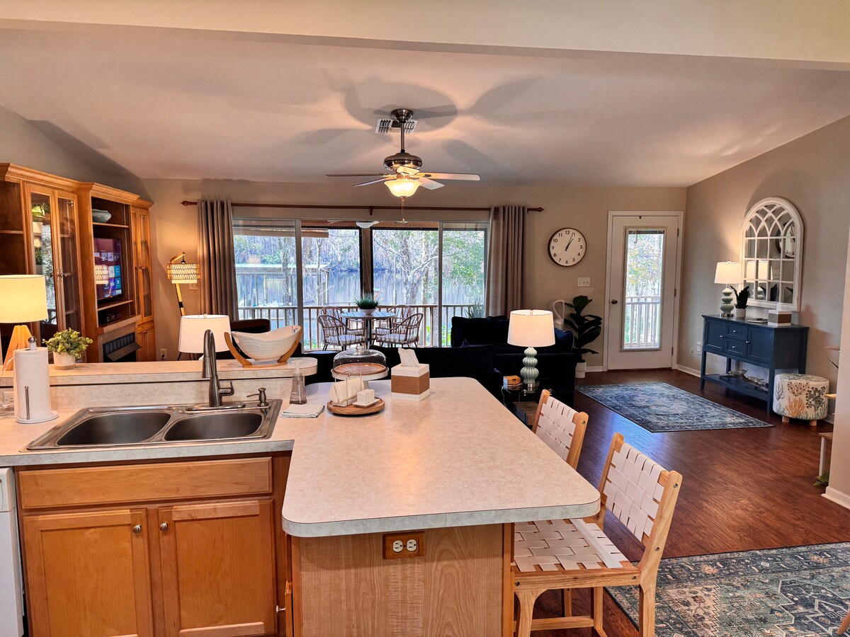 Welcome to paradise. A modern style and freshly renovated Waterfront House in Fanning Springs, Florida. This cozy getaway is located on a private canal seconds off The Suwannee River. Bring your boat and cruise to the nearby springs or venture to the Gulf for the big catch. The balcony of the home sits just feet off the water. With its own private concrete boat ramp, dock, kayaks and yakport. Everything you need for a fun, relaxing or romantic waterfront getaway.
