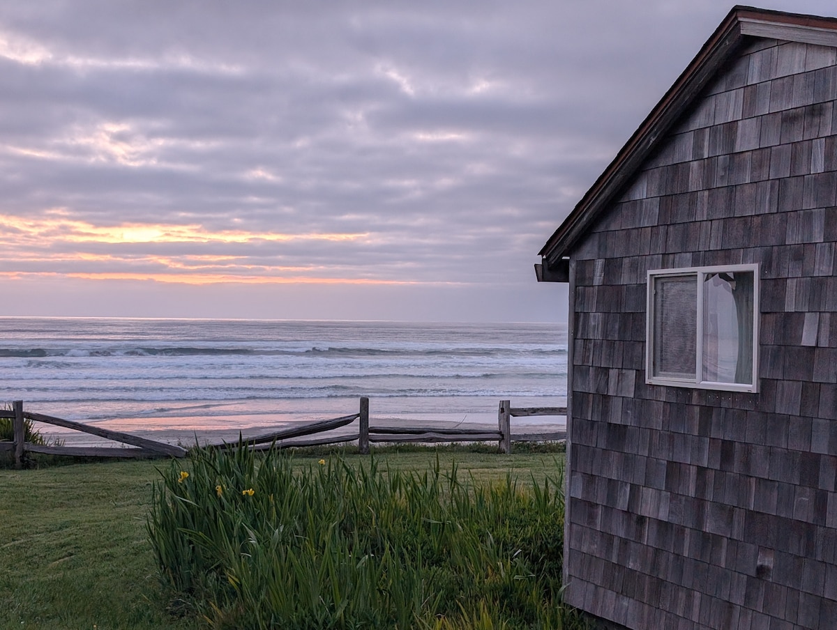 Cozy cabin with ocean view, located along 7 miles of beautiful & secluded beach. This 2 bedroom, 1 bath, (1,000 sq ft) rustic A-frame cabin offers a full kitchen, high-speed internet, smart tv, & wood burning fireplace. Enjoy exploring the cliffs & caves, agate hunt in the nearby creek or enjoy making a bonfire on the beach. We welcome your dogs (up to 2), so your furry friends can join in the fun. Big Blue Film Fest: Jan 22-24 The Blue Line: Feb 7: 10-5 Newport Seafood & Wine Fest: Feb 19-22