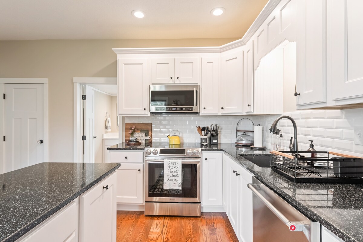 Relax by yourself or with the whole family at this charming 1910 carriage house. :) Fresh flower bouquet! Listen to vintage records on the record player. The fully functional kitchen, stocked with water bottles, yogurt, and my homemade granola, will keep you happy. :) Sleep in comfort on the king-size, full, and twin bed. The monitors, office chairs, Wi-Fi, desk and printer makes a remote workplace. Kids? We got you! A kid's indoor play area + outdoor playground. No Pets. There are stairs.
