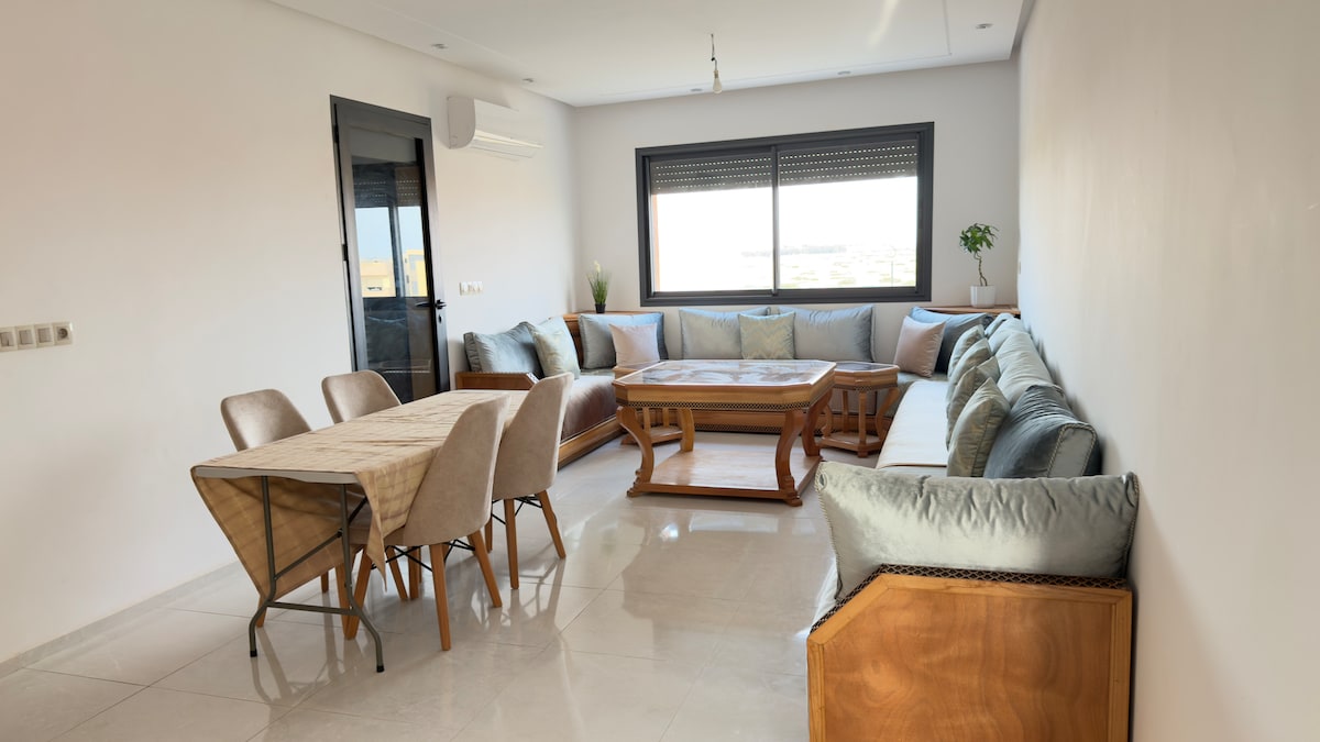 Situé au sein d’une résidence sécurisée 24h/24 avec grande piscine notre appartement vous accueille dans une atmosphère à la fois chic, chaleureuse et authentiquement marocaine. Un espace de télétravail conçu soigneusement pour vous offrir le confort et les fonctionnalités nécessaires Ce logement offre un accès privilégié à un club aquatique. Logement est réservé exclusivement pour les familles. Selon la réglementation l'acte de mariage est obligatoire. le parc aquatique sera ouvert le 1er Mai.