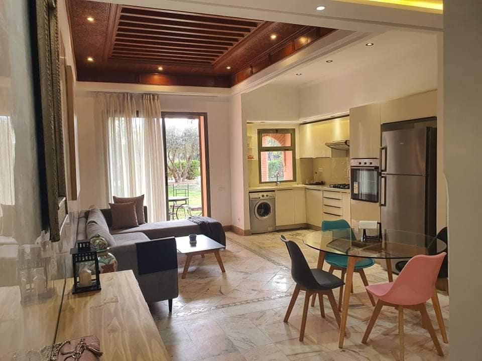 Cozy and modern apartment, close to all amenities, secure, 100 mbps internet speed, Marrakech airport 20 minutes' walk, train station, gardens next door, medina. Means of transport nearby. I will be at your disposal throughout your stay and to make your stay unforgettable, for people Marie or family, individual, foreign couples not necessarily we offer Moroccan specialties I have organized airport transfers early in the morning