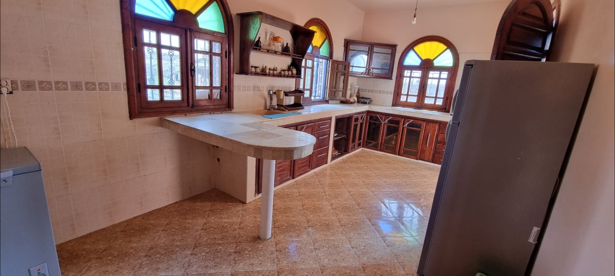 Villa on 2 levels, 3 km from the entrance to Oualidia, El Jadida-Safi coastal road. Ground floor: 2 living rooms, a large kitchen and a bathroom. 1 st floor: 4 bedrooms, a bathroom and a large terrace. Spacious garden with children's play area and a private pool of 4 × 6 m², depth 1.50 m. Not to mention the many farm animals that roam around you in this unforgettable accommodation nestled in the heart of nature.