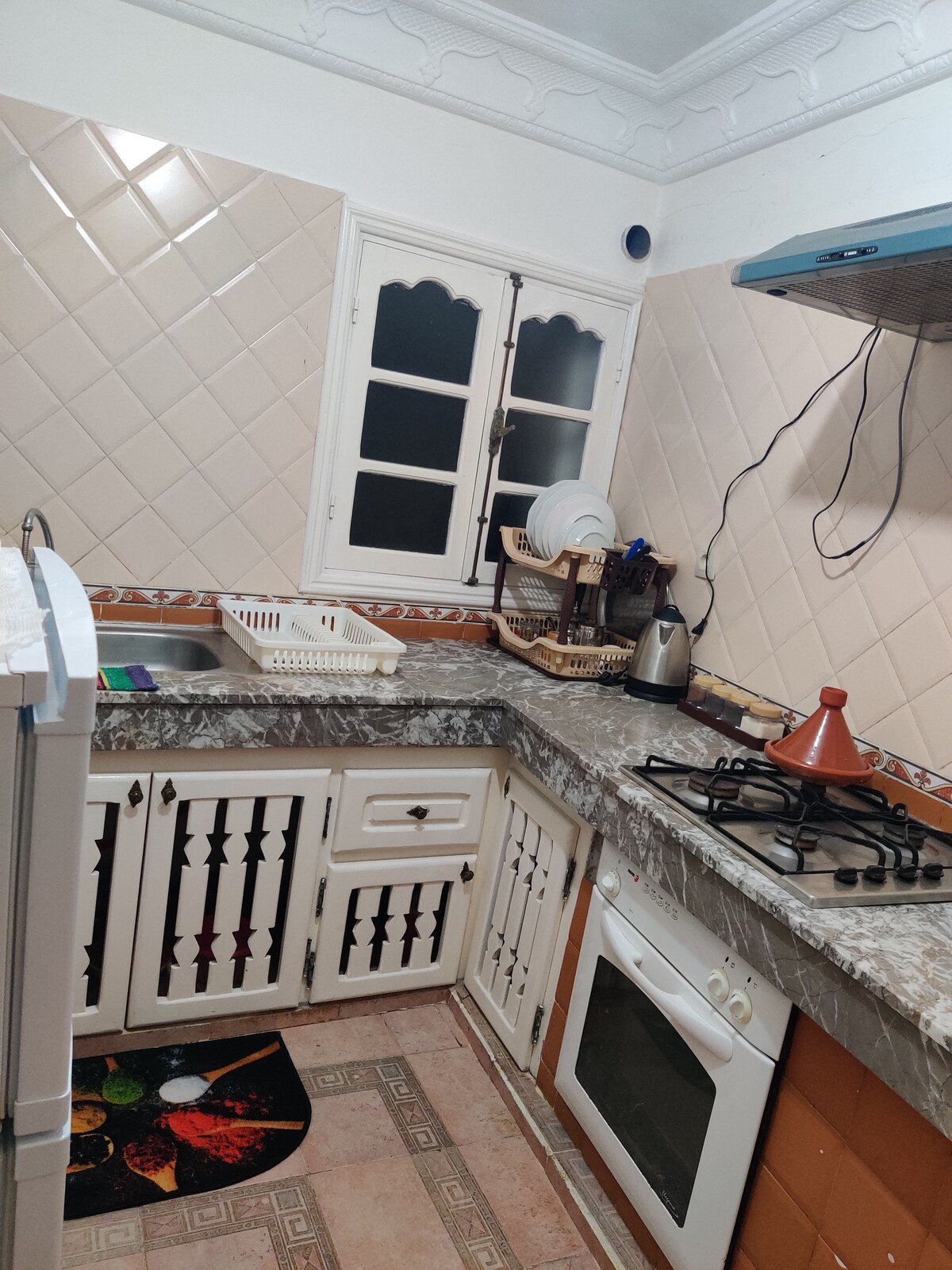 With its peaceful and conducive neighborhood, its quiet and secure environment, its proximity to all amenities, its location 5 minutes from OUALIDIA beach, its free parking 3 steps from its door, and its spacious and equipped kitchen, the Hajar apartment is made for you, to spend a comfortable stay with family, friends or passing through for your work. We do not accept Moroccan couples without a marriage certificate.