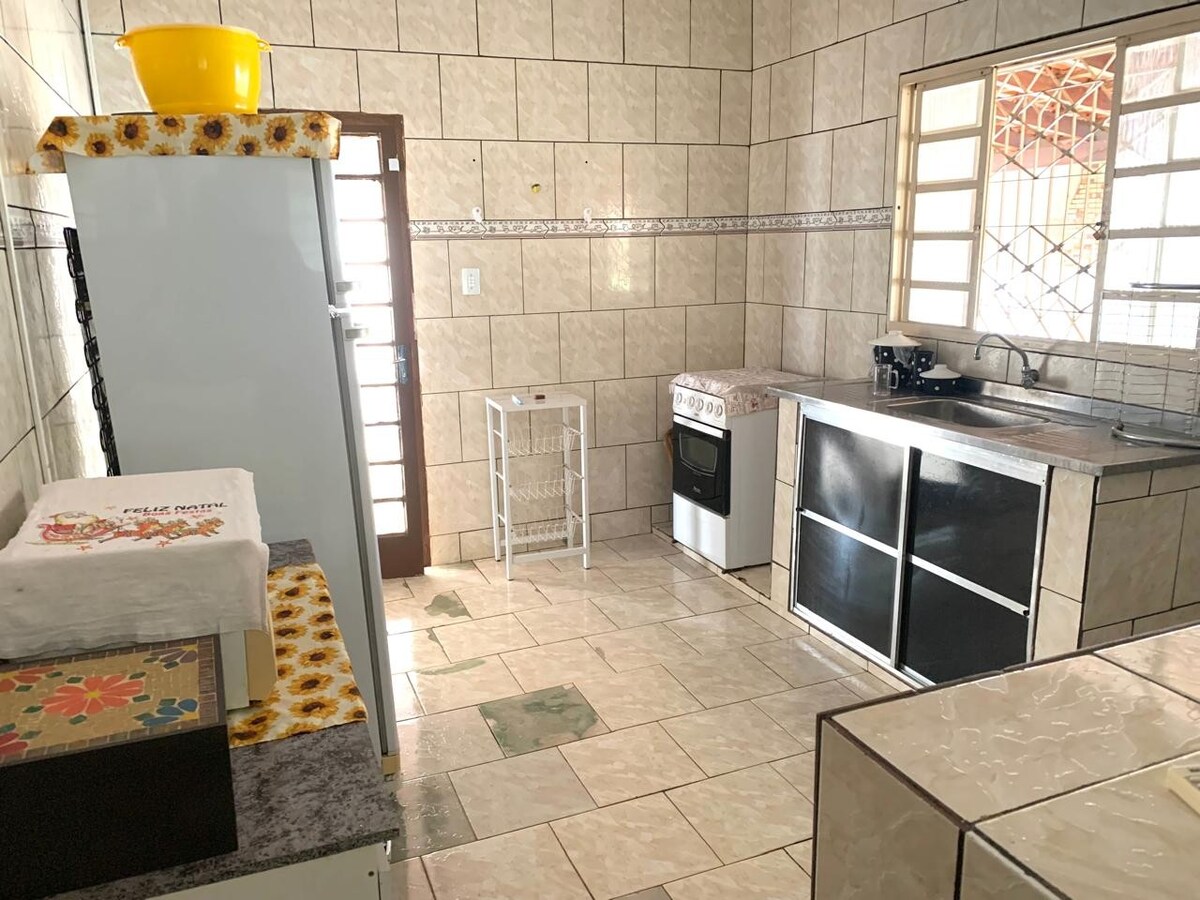 Sejam bem vindos! Imóvel simples e aconchegante, localizado em bairro residencial seguro e arborizado. Local ideal para quem busca tranquilidade, conexão com a natureza e principalmente privacidade. Sintam-se, em casa! Saliento que o ar condicionado da sala/cozinha não tem capacidade para refrigerar todo o ambiente, a função dele é somente para amenizar o calor. O do quarto sim, é para atender e refrigerar adequadamente o ambiente.