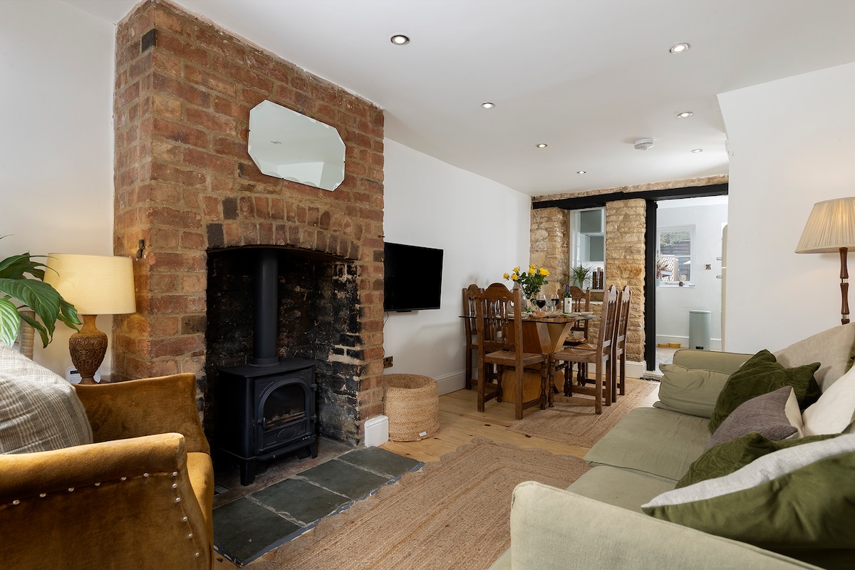 A quaint Cotswold cottage in the centre of Chipping Norton. This stylish two bedroom property offers a cosy & relaxing stay with a log burner for those cold winter nights, open plan living with 50 inch smart tv and kitchen. On the first floor is a good sized bathroom with a powerful shower and a bedroom with a king bed. On the top floor is an open plan bedroom & bathroom with free standing bath and a superking bed. Throughout the house is exposed Cotswold stone giving you that authentic feel.