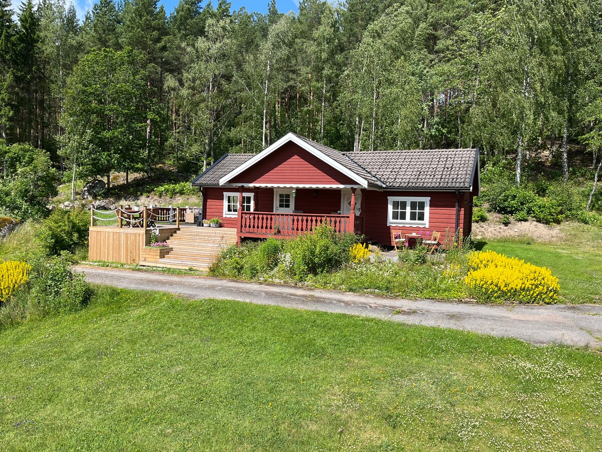Enjoy the tranquility of our idyllic cottage, surrounded by nature, with a cozy fireplace and beautiful views! We offer the possibility to borrow bicycles and rent a kayak and rowing boat. You can take a short walk to buy eggs or locally produced apple cider directly from the neighboring farmer, visit cows, horses, chickens and watch deer. A 5-minute bike ride takes you to a beautiful lake, or why not take a trip to Vimmerby and Astrid Lindgren's World just 40 km away? Book now for a magical vacation!