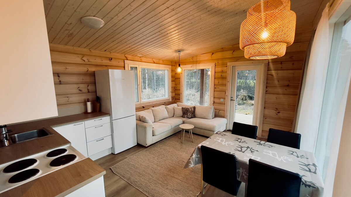 Welcome to a new cottage where the magic of the north comes to life! The windows offer a magnificent view of the lake, and in clear weather the sky is adorned with dancing northern lights. Inside, warmth and atmosphere are provided by a fireplace that invites you to relax in the midst of nature's silence. The perfect place to relax, enjoy and experience the magical moments of Lapland in comfort and peace.