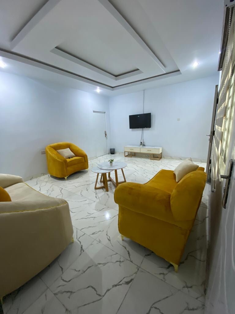 Low Cost Entire Two Bedroom Flat/Apartment,entirely there are four seperate apartments. Car and driver available for booking. 20KVA Generator withe solar concepts which guarantees 24/7 electricity that provides all-day and night back up Electricity.the building contained two bedroom ensuits, with ready to use kitchen. Property has enough space for up to sixteen cars, with electric fence wiring and vigilant cameras installed. All night electricity guaranteed,security concepts.its a home indeed