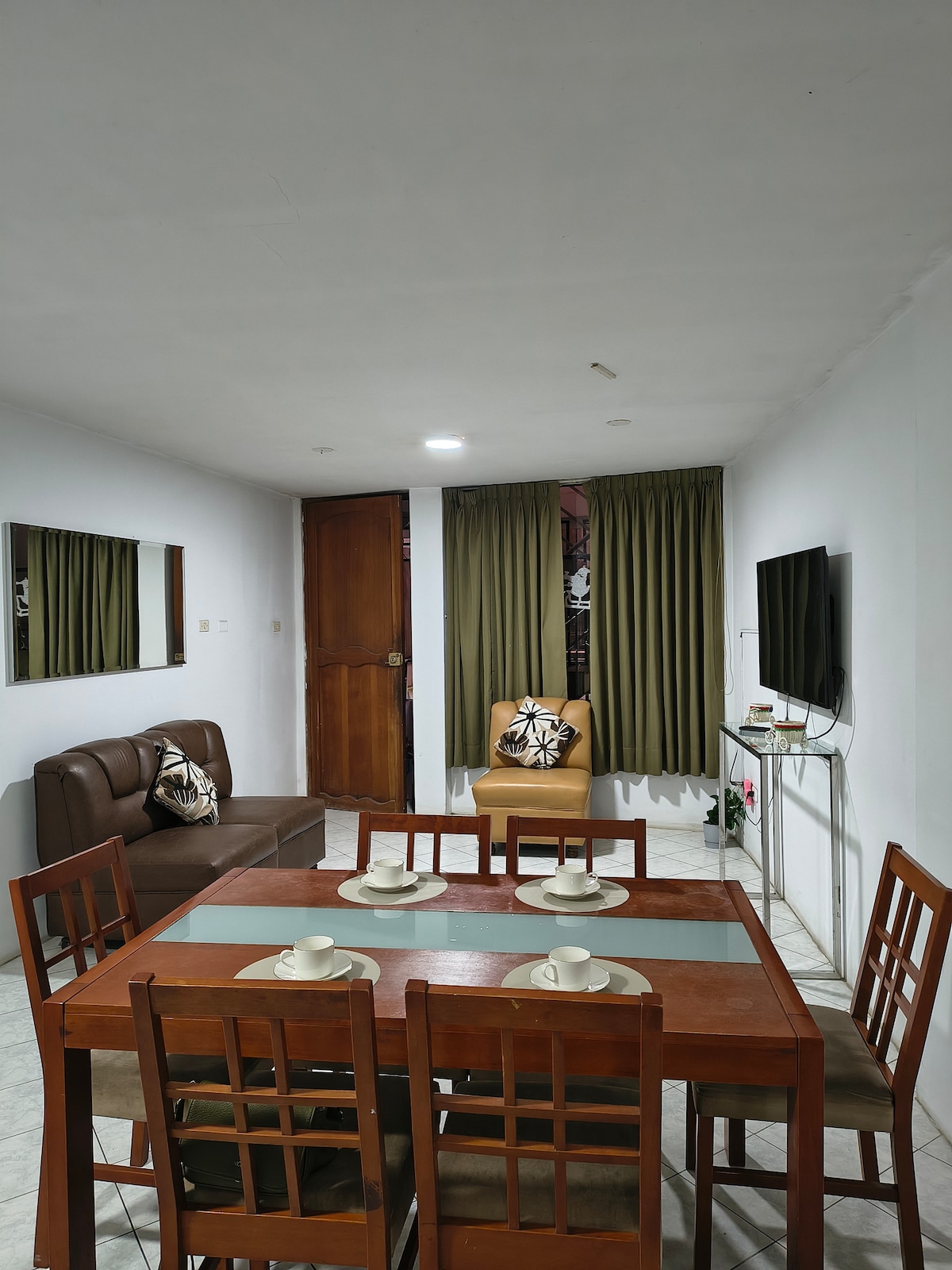 El departamento esta ubicado en el tercer piso, cuenta con WiFi, podrás pasar unas lindas y tranquilas vacaciones. Tu familia estará cerca de todo cuando te quedes en este alojamiento céntrico, está a tres cuadras del malecón Grau.
