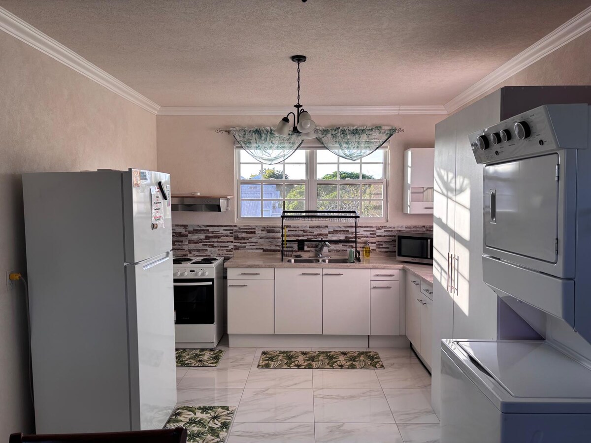 Fully furnished, spacious, intimate and serene space, 5 mins from the airport, 2 mins from the Villages at Coverley with access to a supermarket, restaurants, gas station, medical centre, courts and playing field. Close to Miami Beach, Oistins. Great for families, students, individuals and in-transit passengers at the airport.