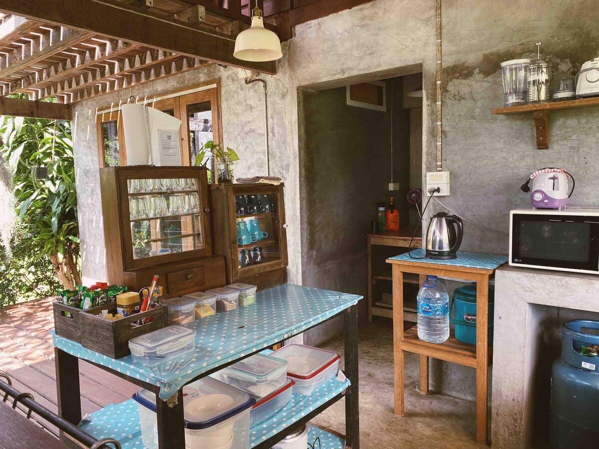The Ocean Room is a small, sweet private room with a cozy and intimate feel. hot water all the time. Surrounded by greenery and part of a calm, community-oriented place by the river, it’s ideal for solo travelers, couples, or digital nomads looking for a peaceful space. The room offers fast and reliable WiFi, access to a shared kitchen, and a relaxed atmosphere with occasional small gatherings. Simple, quiet, and full of charm.