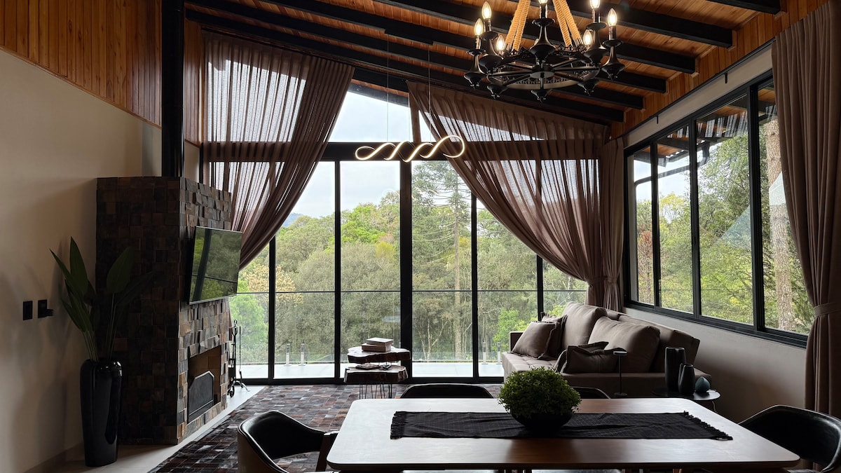 Entre o verde da mata nativa e o ar puro da serra, o Vila Nevada é um refúgio pensado para desacelerar. Vista deslumbrante, balanço infinito para sonhar, fogo eterno para aquecer o coração e cozinha completa para momentos únicos. Ideal para casais, mas com espaço para mais. Aqui, cada detalhe convida à paz e ao encanto.